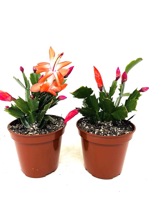 2 Red Christmas Cactus Plants In 4 Pots Zygocactus Etsy